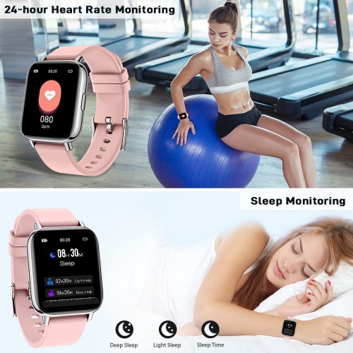 • Your Personal Smart AssistantпјљThis smartwatch includes more practical functions, activity tracker (pedometer, calories, distance), heart rate monitor, sleep tracker, 24 sports modes, call notifications, sms and app messages (Whatsapp, Facebook, Instagram ...), music and camera controller, sedentary reminders, alarm clock, stopwatch, weather, find your phone, and other functions to meet your daily needs.